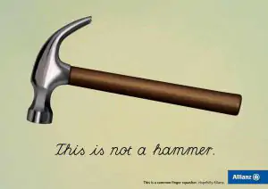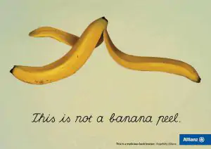 La enigmática obra “C’est ne pas une pipe” inspiró a la compañía de seguros Allianz para llevar a cabo una de sus campañas. En esta se sustituye la pipa por objetos cotidianos como son un martillo, una teja y un plátano. El concepto que perseguía de esta manera era poner de manifiesto que, aunque sean objetos aparentemente normales, podían ser igualmente peligrosos.