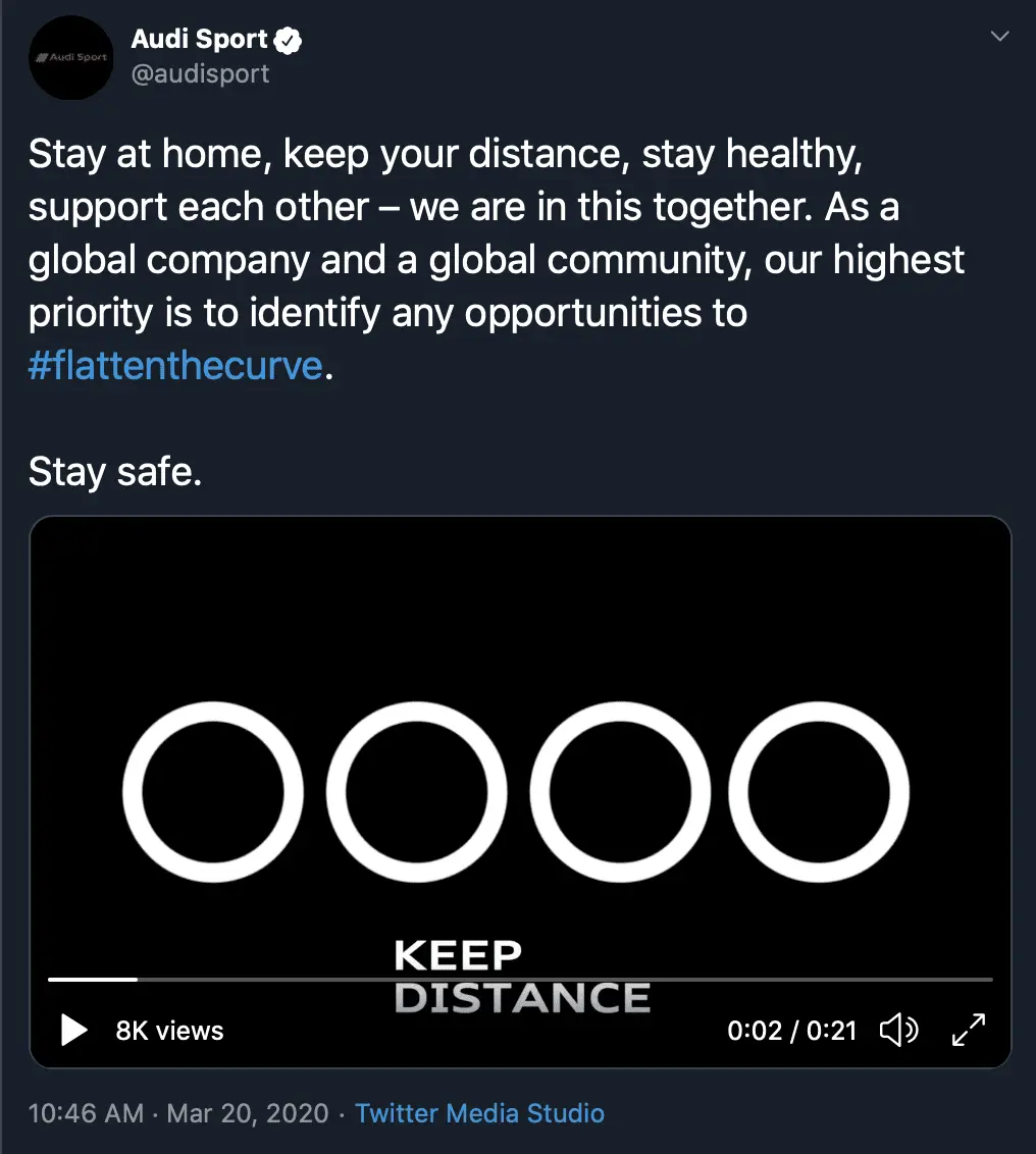 Por su parte, algunas marcas han querido dar un paso más y han lanzado campañas publicitarias especiales y especificas centradas en el COVID-19. Es el caso de Audi con el spot “Esta curva la paramos juntos”. Ikea con su campaña “Tu casa tiene algo que decirte” nos recuerda que nuestra casa es nuestro refugio y nos da las instrucciones sobre “Qué necesitas para quedarte en casa”, al estilo habitual de la marca.